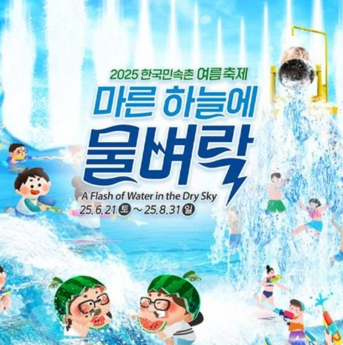 전통과 물놀이가 만나는 이색 여름 축제! ‘마른 하늘에 물벼락’은 더위를 날려줄 물벼락 퍼포먼스와 가족 단위 체험 콘텐츠가 가득한 한국민속촌 여름축제입니다.