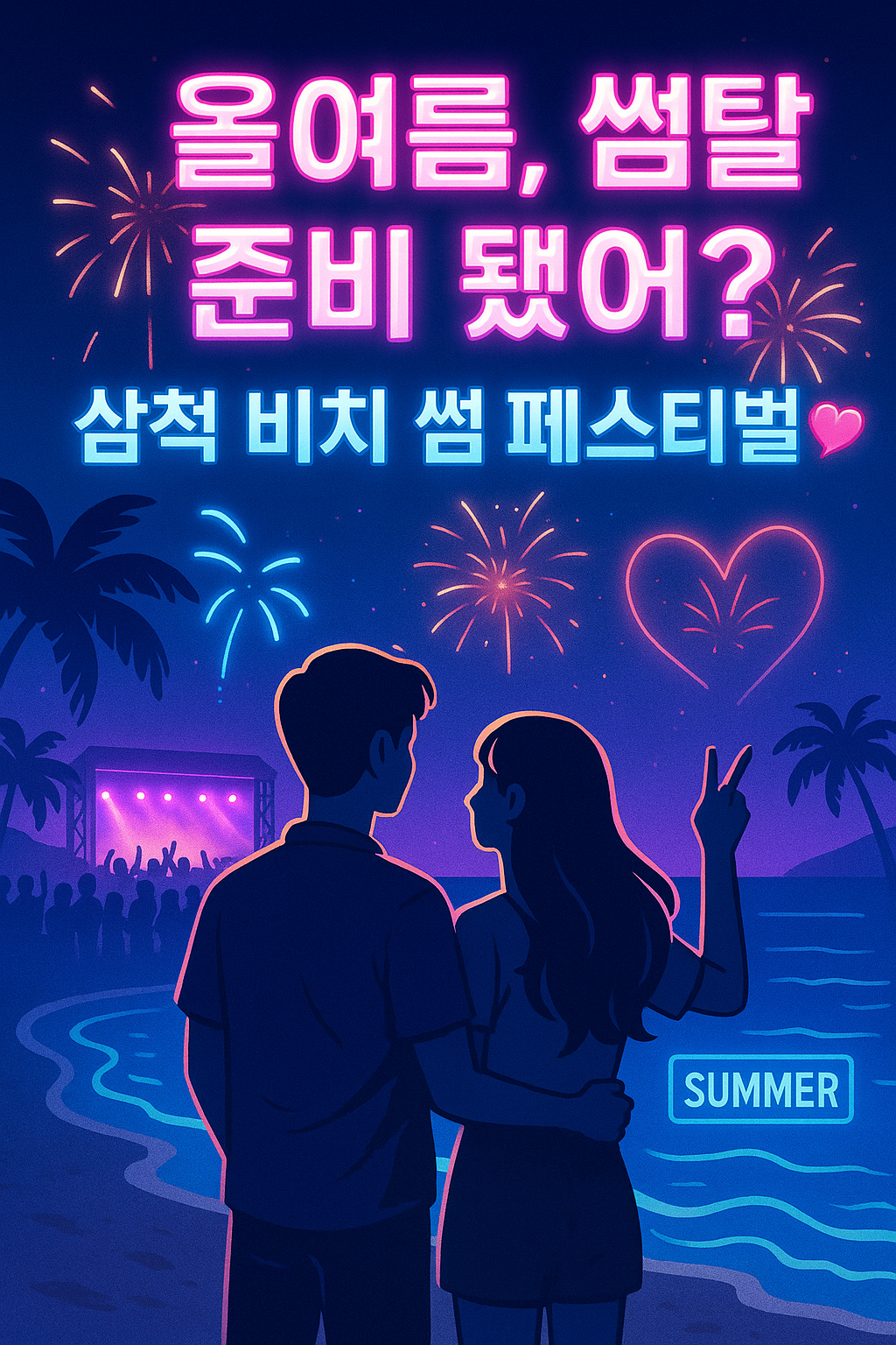 한여름, 동해안의 푸른 바다와 밤하늘 아래 펼쳐지는 삼척 비치 썸 페스티벌! 시원한 바닷바람과 감성 가득한 공연, 그리고 젊음을 불태우는 참여형 프로그램까지! 8월 1일부터 3일까지 열리는 이 축제를 소개합니다.🎆